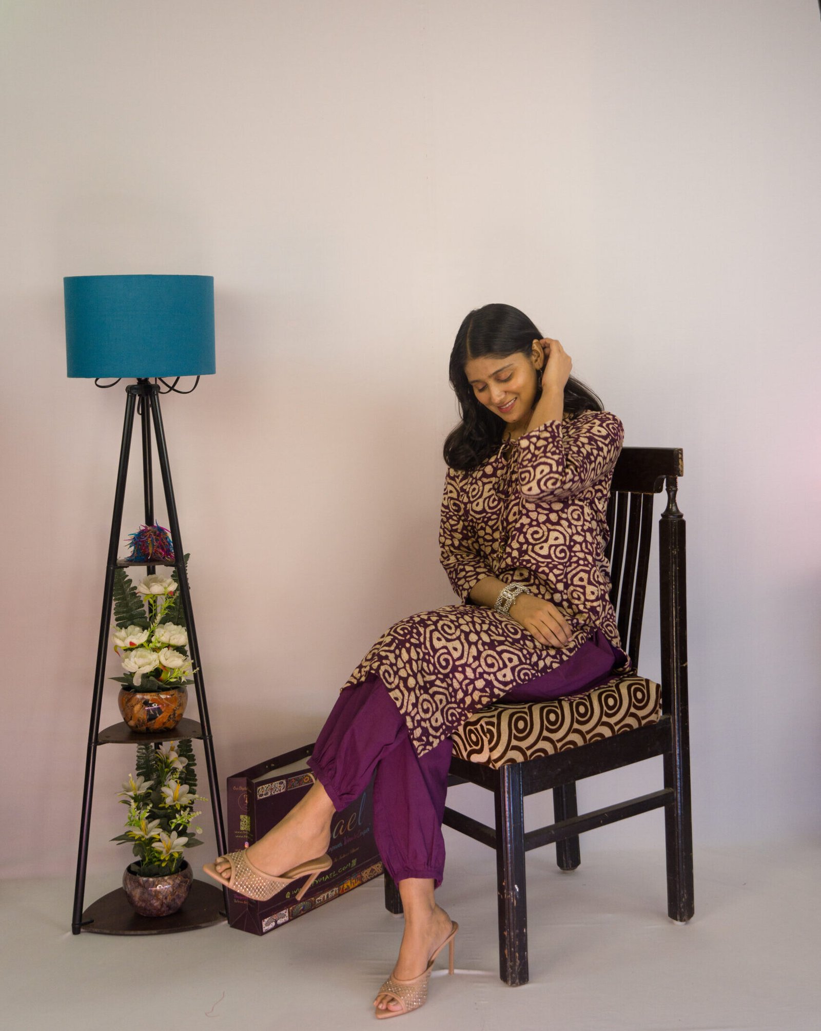 Product Name: Batik Print Kurta & Salwar Set – Purple & Beige